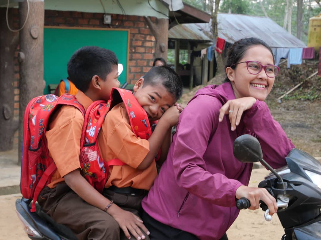 Senangnya hatiku. Pagi ini Bu Guru Juana @Yohanamarpaungg tersenyum lebar. Dia mengantar, Nyeser dan Besimbur, dua anak Suku Rimba yg meneruskan sekolah ke SD Air Panas, di luar kompleks Taman Nasional Bukit Dua Belas (TNBD), Jambi.