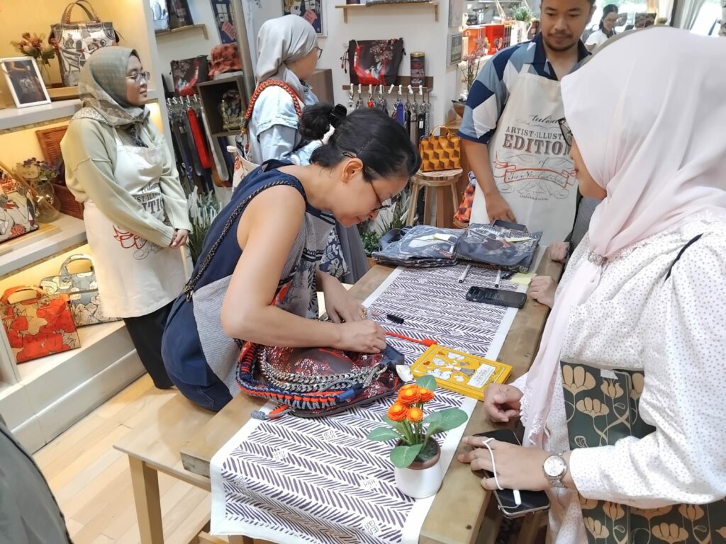 Bertempat di Butik Tulisan, di Dharmawangsa Square, pada 20 April 2024. Sebuah acara dihelat untuk menandai peluncuran simpul Bhinneka terbaru karya @madebytalullah yang kombinasi warnanya dapat dipadukan dengan 6 tas terbaru karya Melissa Sunjaya.